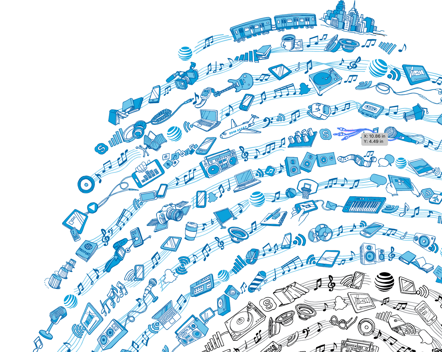 Thumbprints tell the story of professionals and how AT&T connects their world. I drew objects that represented aspects of their day and arranged them into a fingerprint pattern to tell this story in a visually arresting way.
